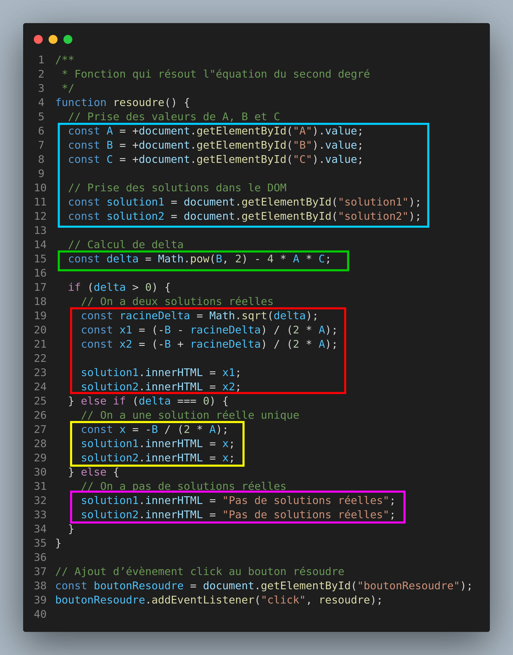 Resolution d'une équation du second degré dans R